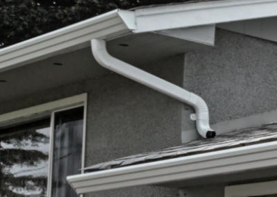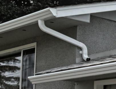 Fascia gutters are generally used where the builder has not installed a fascia board over the sub-fascia. The greater depth allows the gutter to cover the 2 x 4″ subfascia and soffit J-Trim for a clean look. They can also be used on a larger fascia board if the style is preferred.